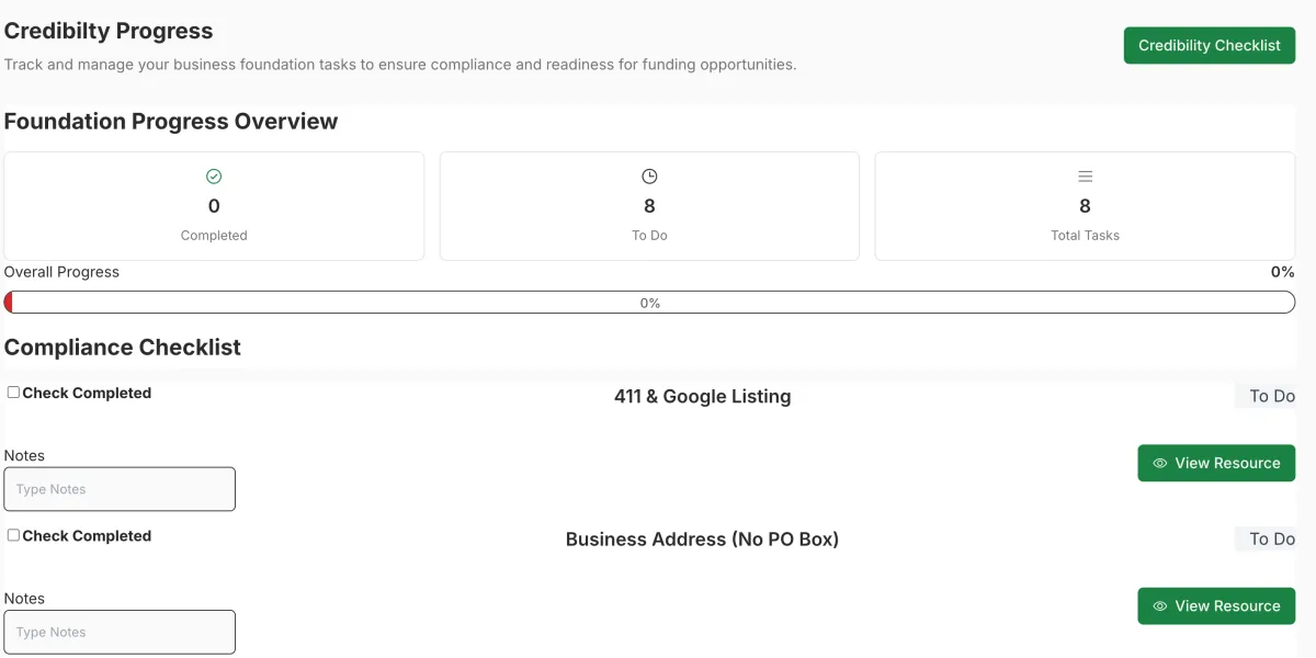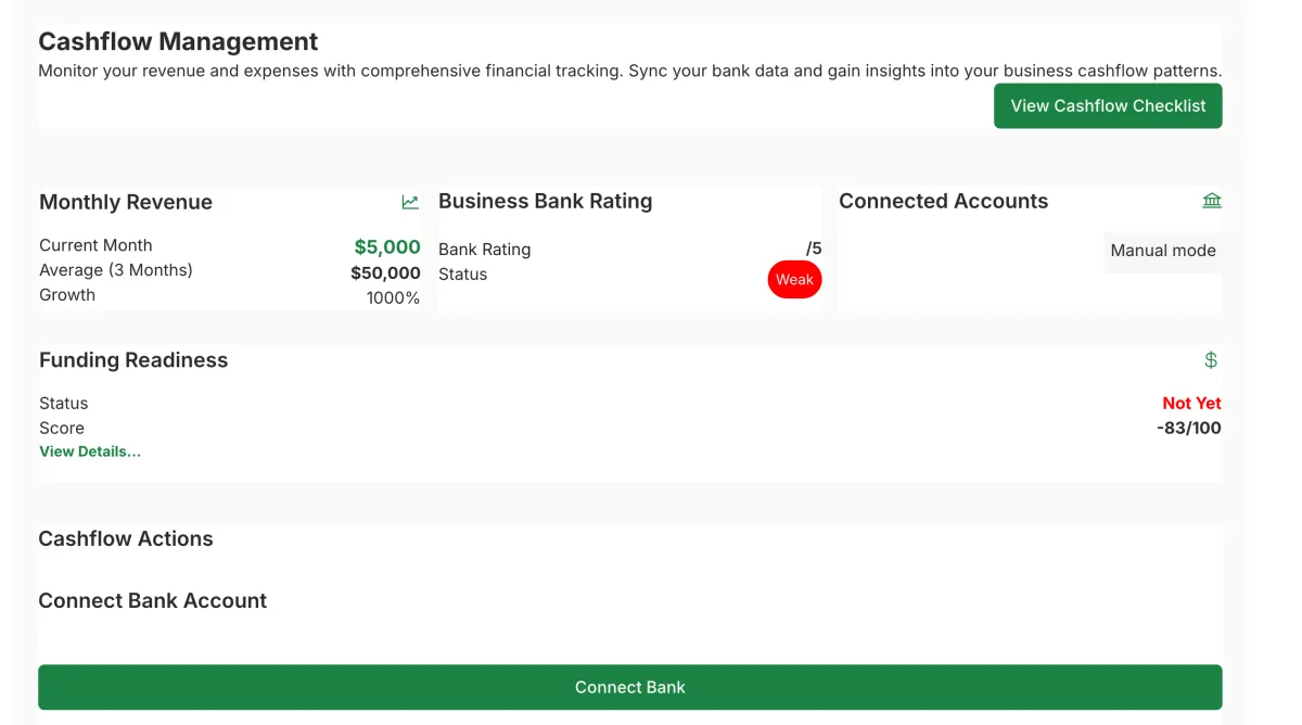 ✅ Automated Recommendations – Each report includes clear next steps to boost fundability.