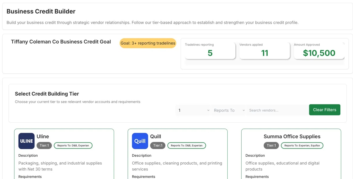 ✅ Client Tracking – See where every business stands across the 3 C’s in one simple view.