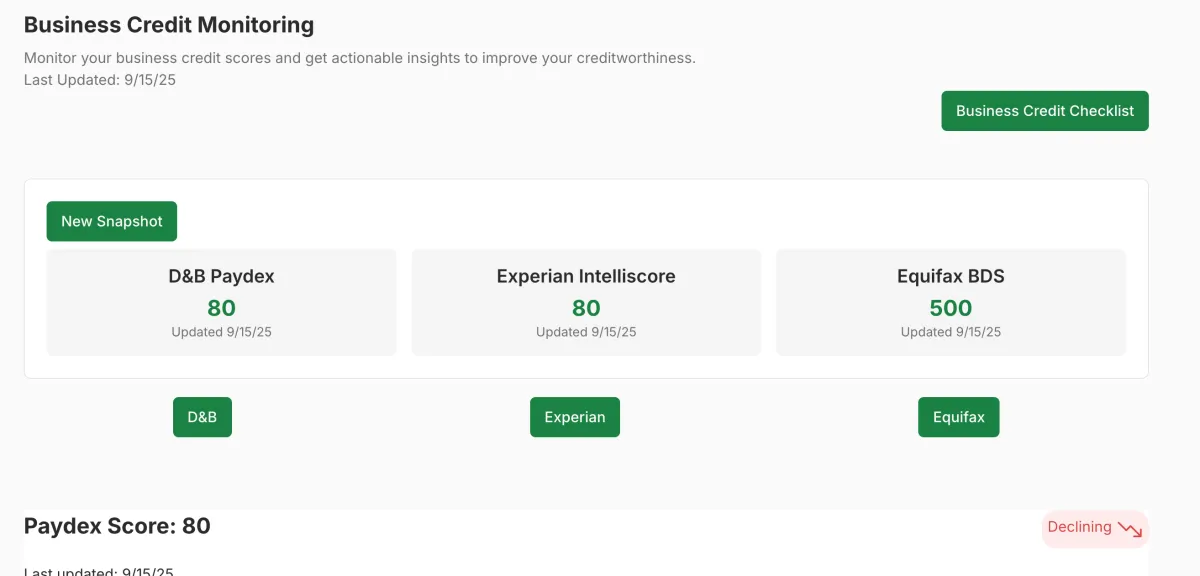 Deliver professional, data-driven reports that show how lenders view your clients across the 3 C’s: Credibility, Cashflow, and Credit — and help them qualify faster for no-PG funding.